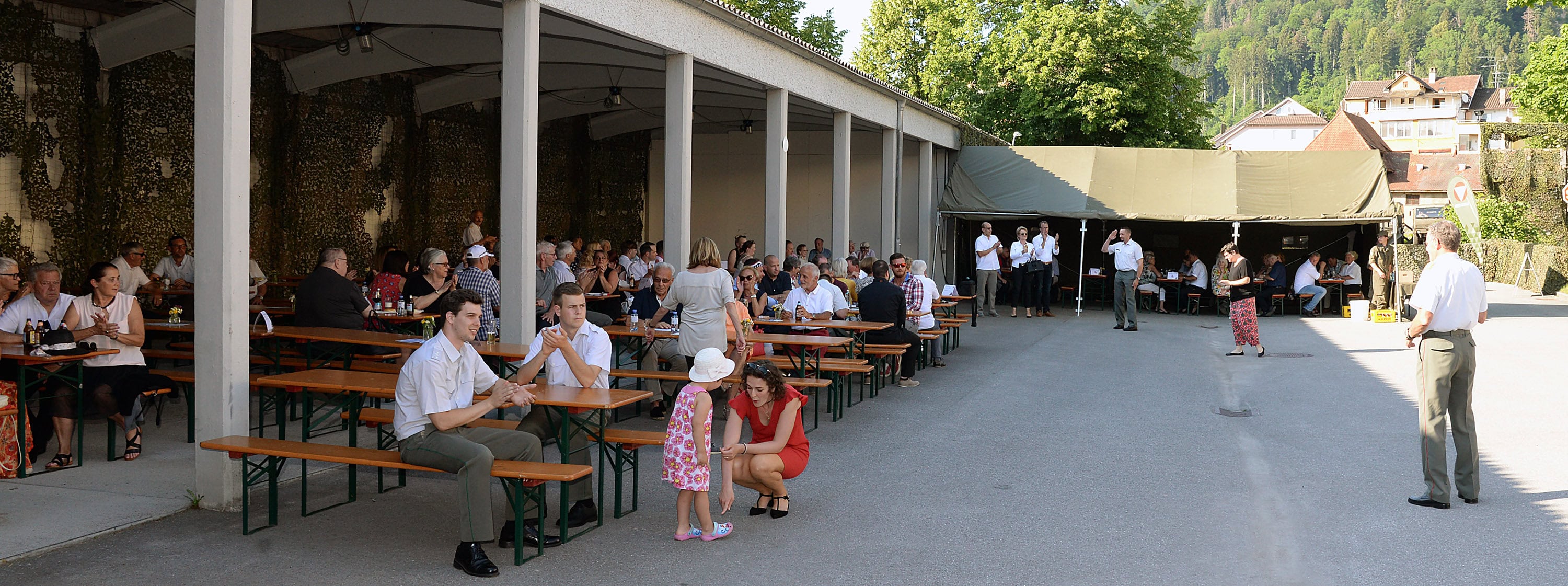 Das Militärkommando Vorarlberg lud vor wenigen Tagen zum Garnisonsfest ins Kommandogebäude Oberst Bilgeri. Geladen waren alle Bediensteten des Militärkommandos, des Jägerbataillons 23, Pensionisten des Bundesheeres, wehrpolitisch relevante Vereine, Milizsoldaten, Behördenvertreter und Personen des öffentlichen Interesses. Knapp 200 Gäste erschienen bei traumhaftem Wetter.
