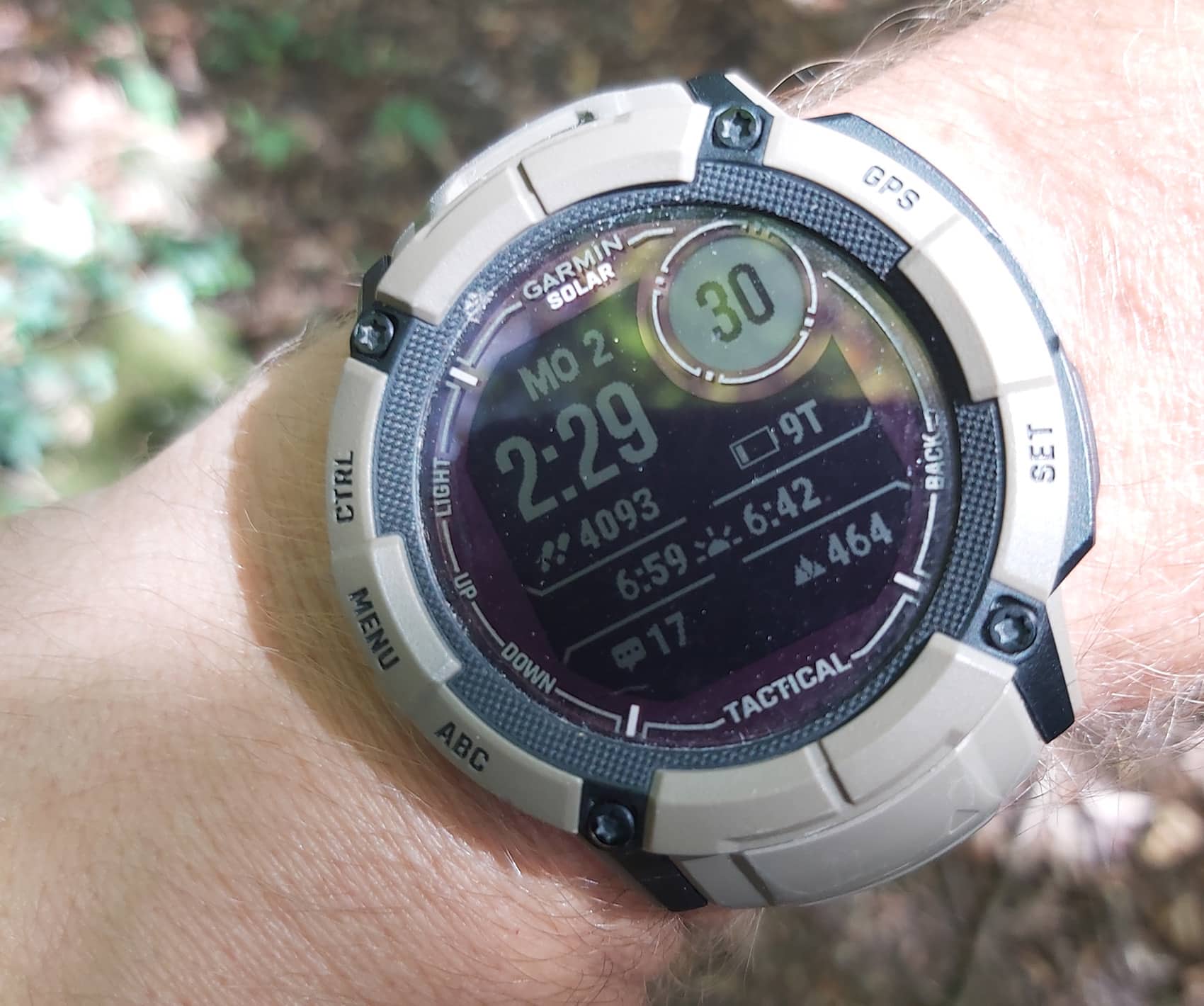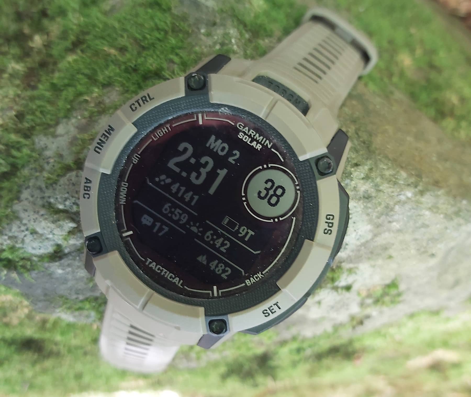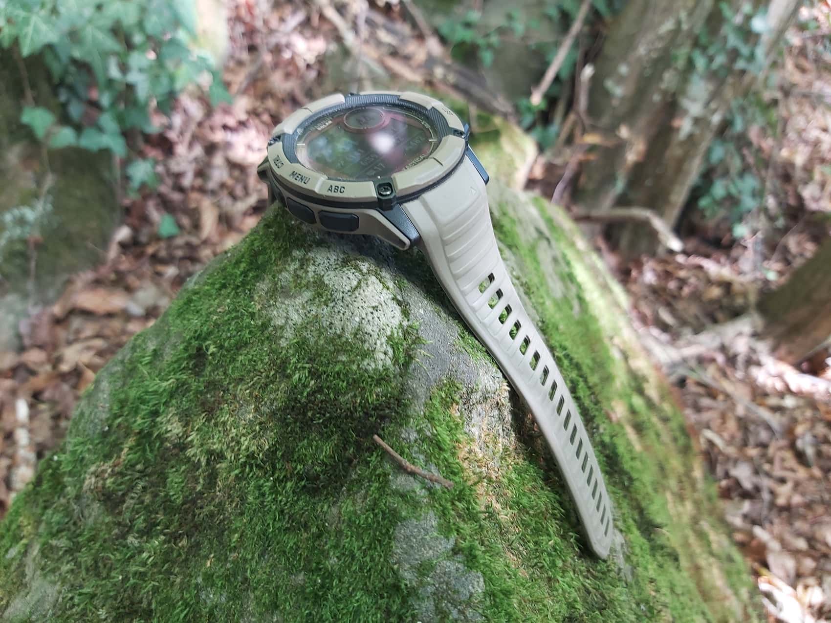 Kommen wir zum militärisch Speziellen der Tactical Edition, die sich doch in einigen Punkten von der „normalen” Instinct 2X unterscheidet. So lässt sich im Tarnmodus die GPS-Position verbergen und die drahtlose Konnektivität und Kommunikation deaktivieren und mit der Kill-Switch-Funktion in kritischen Situationen der gesamte Benutzerspeicher löschen. Die zusätzliche grüne LED der Taschenlampe und der Nachtansichts-Modus ermöglichen auch eine Nutzung mit Nachtsichtbrille. Ein weiterer Vorteil: Das 50 Millimeter große Polymer-Gehäuse (Bauhöhe: 14,5 Millimeter, Gewicht: 67 Gramm, wasserdicht bis 10 atm) ist nach US-Militärstandard 810 im Hinblick auf thermische Leistung, Stoßfestigkeit und Wasserdichtigkeit ausgeführt und daher äußerst robust – im Test bekam die Uhr jedenfalls keinen einzigen Kratzer ab.