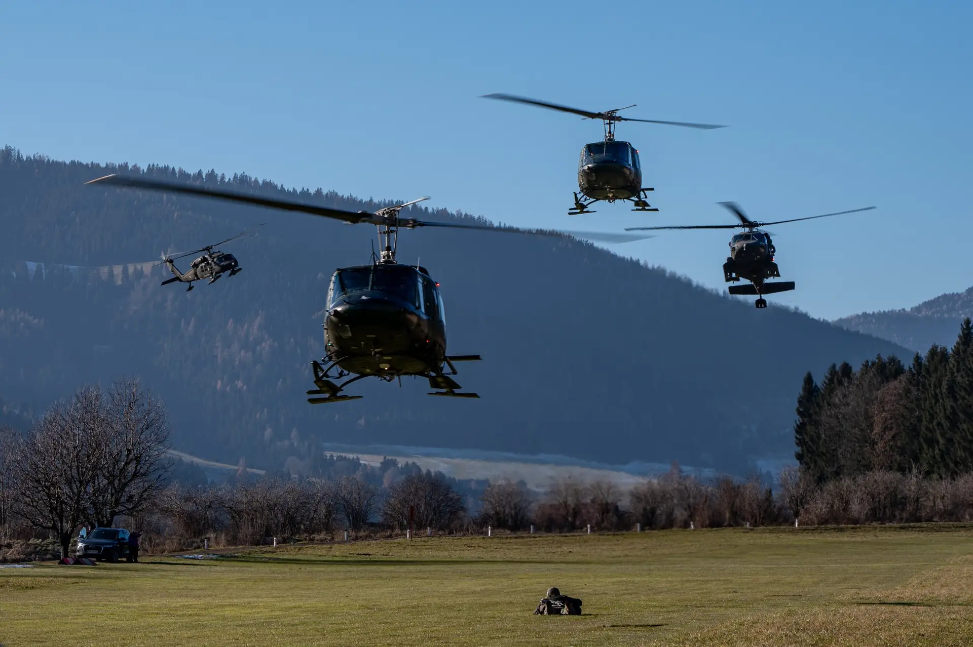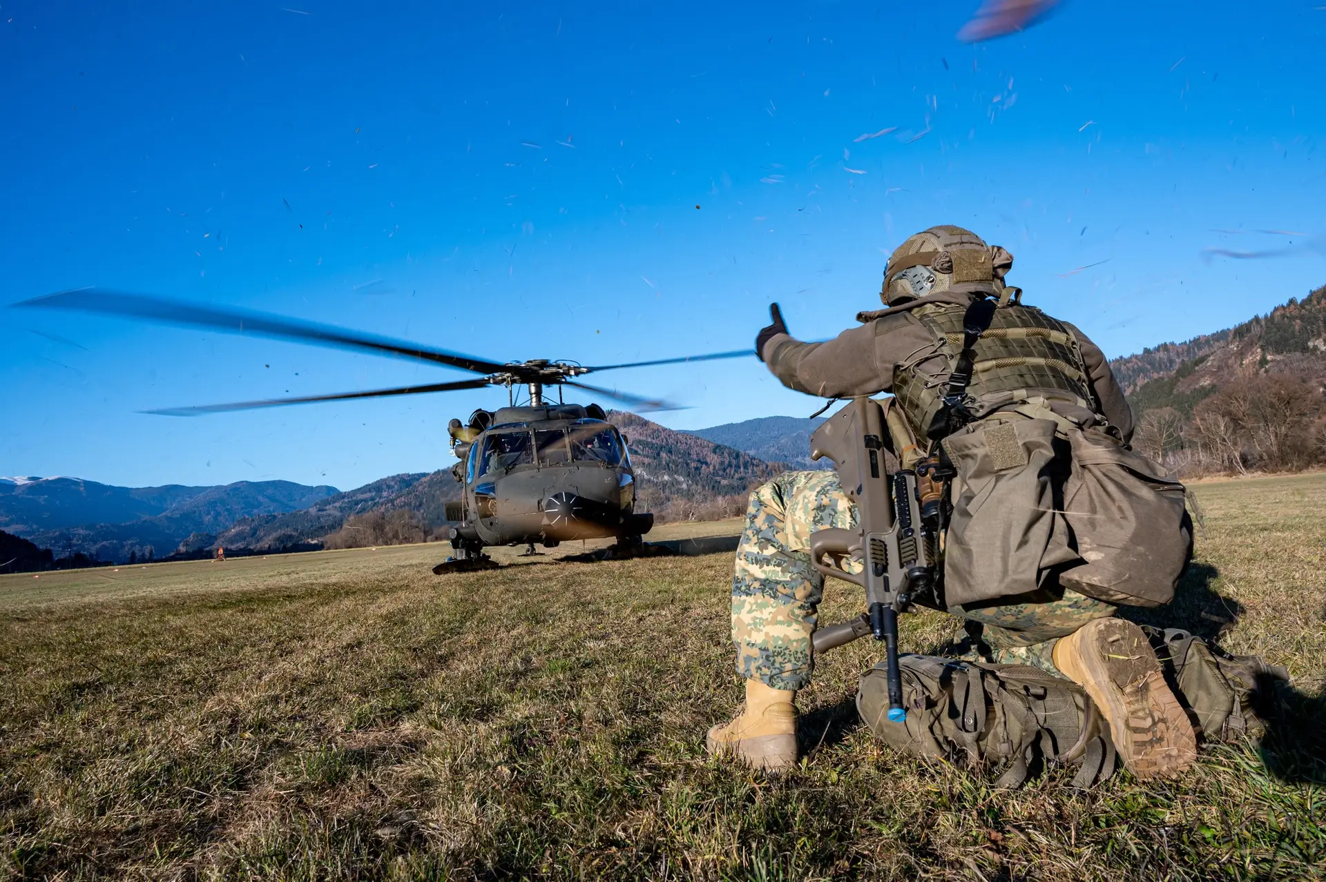 Die Soldaten des Klagenfurter Jägerbataillons 25 der 7. Jägerbrigade (-> 7. Jägerbrigade wird zur Jägerbrigade Jagdkampf) führten vergangene Woche ein intensives Training im Raum Hirt durch, um die Grundlagen luftbeweglicher Einsätze zu erlernen. Etwa 200 Soldaten des Einrückungstermins Oktober 2024 nahmen an der Ausbildung teil, unterstützt von vier Hubschraubern der Typen S-70 Black Hawk und Agusta Bell 212.