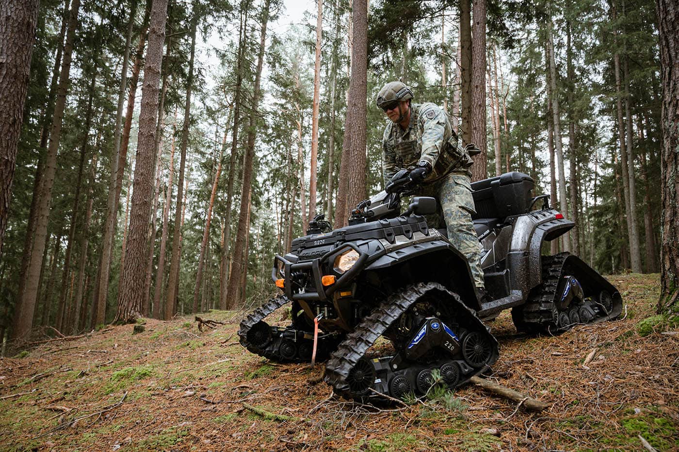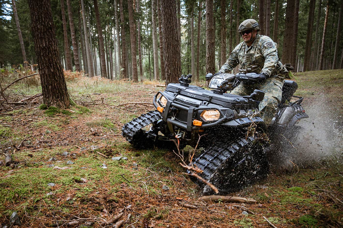 Acht Hägglunds und drei Quads stehen den Soldaten zur Verfügung. Letztere sind mit 90 PS wahre Flitzer nicht nur im Schnee, sondern auch offroad im Wald und ebenso auf der Straße. Genauso wie ihre größeren „Brüder”, die Hägglunds, lassen sie sich mit Anhängern ausstatten, um größere Lasten zu transportieren. Aufklärer, Scharfschützen und Beobachtungstrupps nutzen hingegen vorrangig die Quads. Sie kommen damit rasch in die Nähe ihrer Stellungen und legen von dort die „letzten Meter” zu Fuß zurück.
