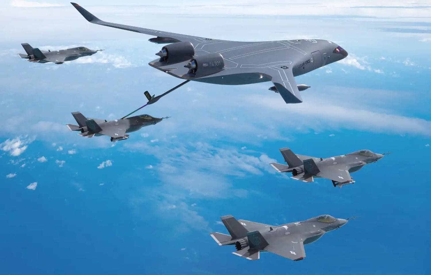 USAF-Staatssekretär Frank Kendall gab am 17. August auf einer Veranstaltung der Air & Space Forces Association den Zuschlag für den Bau eines Demonstrators eines künftigen großen Transport- und Tankflugzeugs mit verlaufender Nurflügel-Rumpf-Auslegung in Vollgröße. Er geht überraschend an das – außerhalb der Fachwelt unbekannte – Start-Up JetZero in Long Beach, das allerdings bei der Umsetzung mit Big Player Northrop Grumman zusammenarbeiten wird. Der futuristische „Blended-Wing-Body” (BWB) mit der informellen Bezeichnung XBW-1 soll bereits 2027 flugbereit sein.