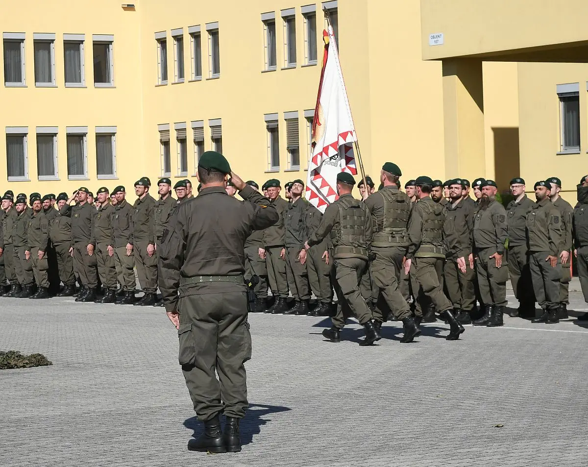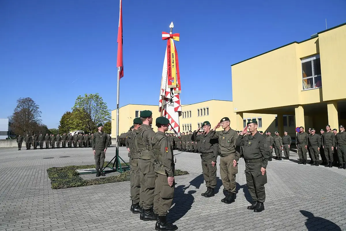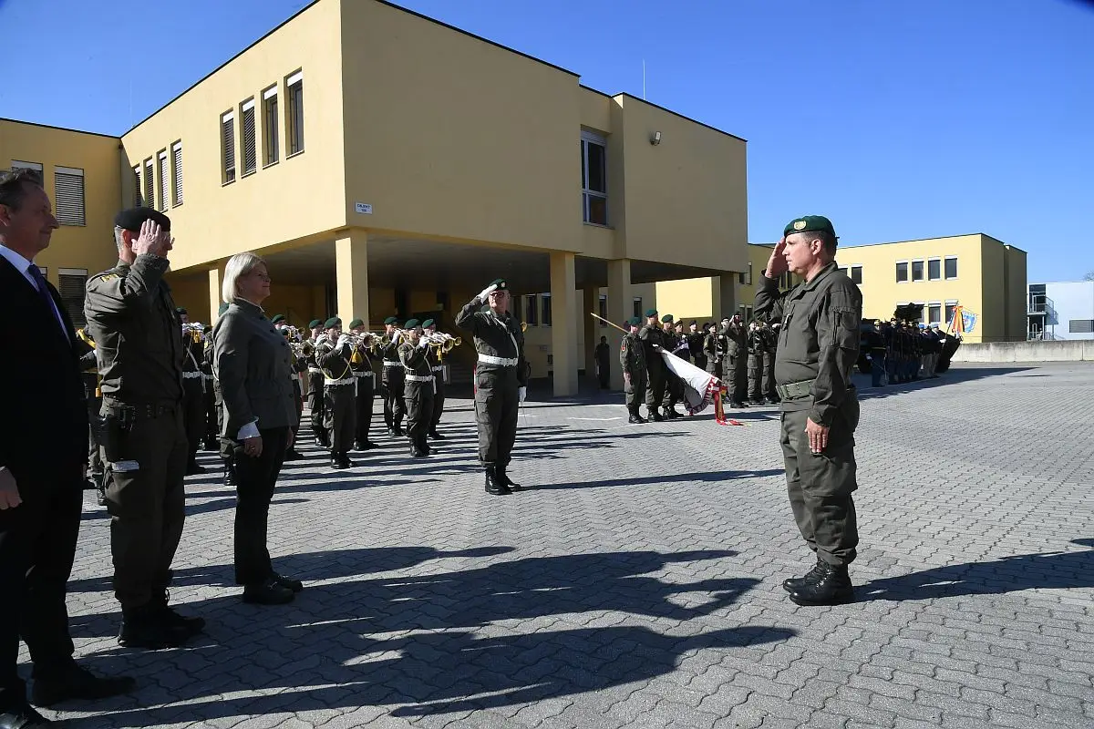 Nach dem Abschreiten der Formation durch Verteidigungsministerin Klaudia Tanner, Oberst Peter Krauss, Oberstleutnant Werner Winkler und Brigadier Gernot Gasser, begann der eigentliche Festakt mit den Ansprachen.