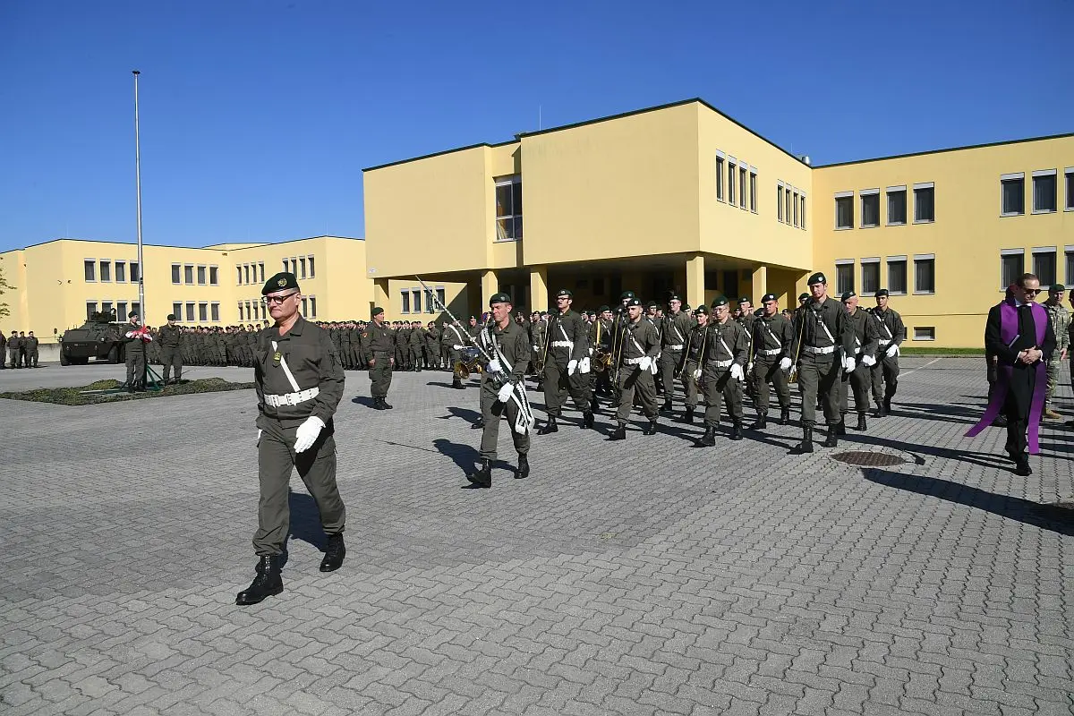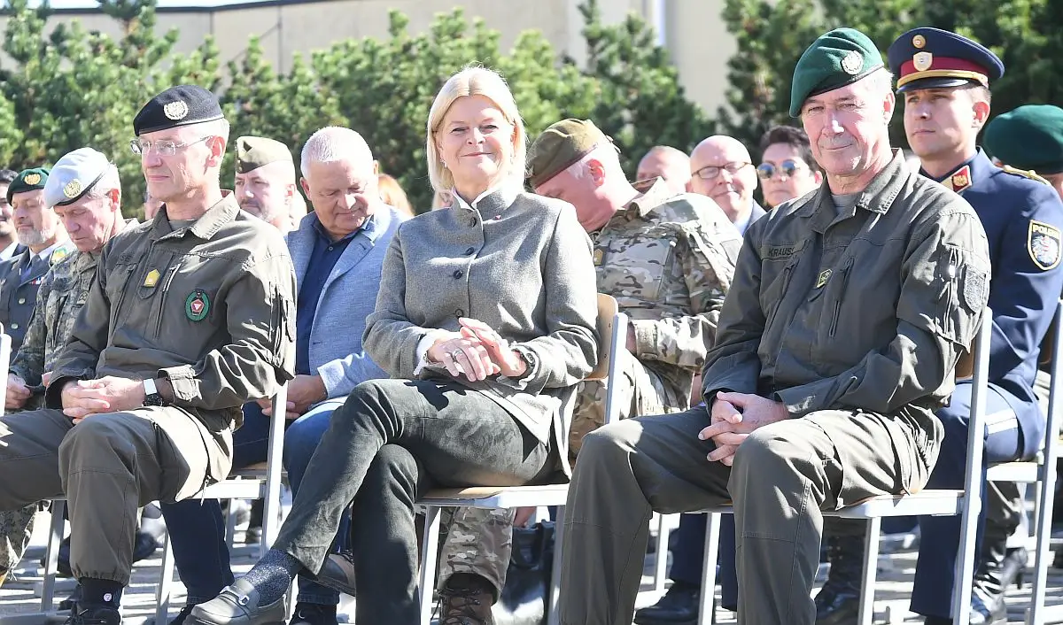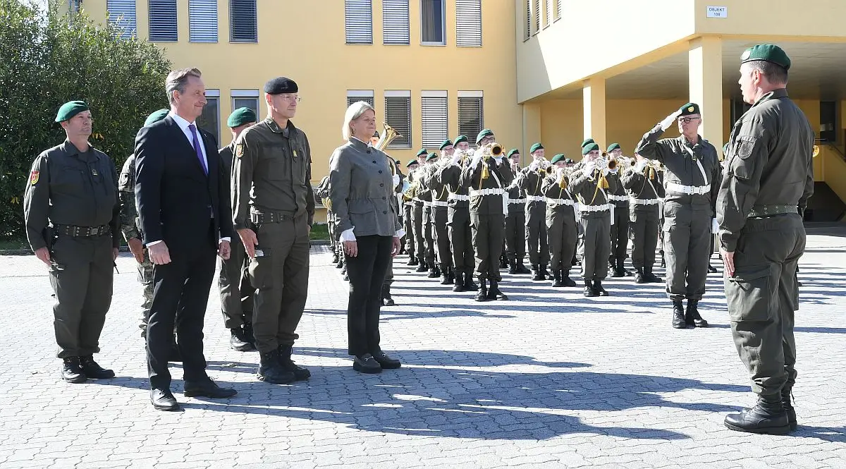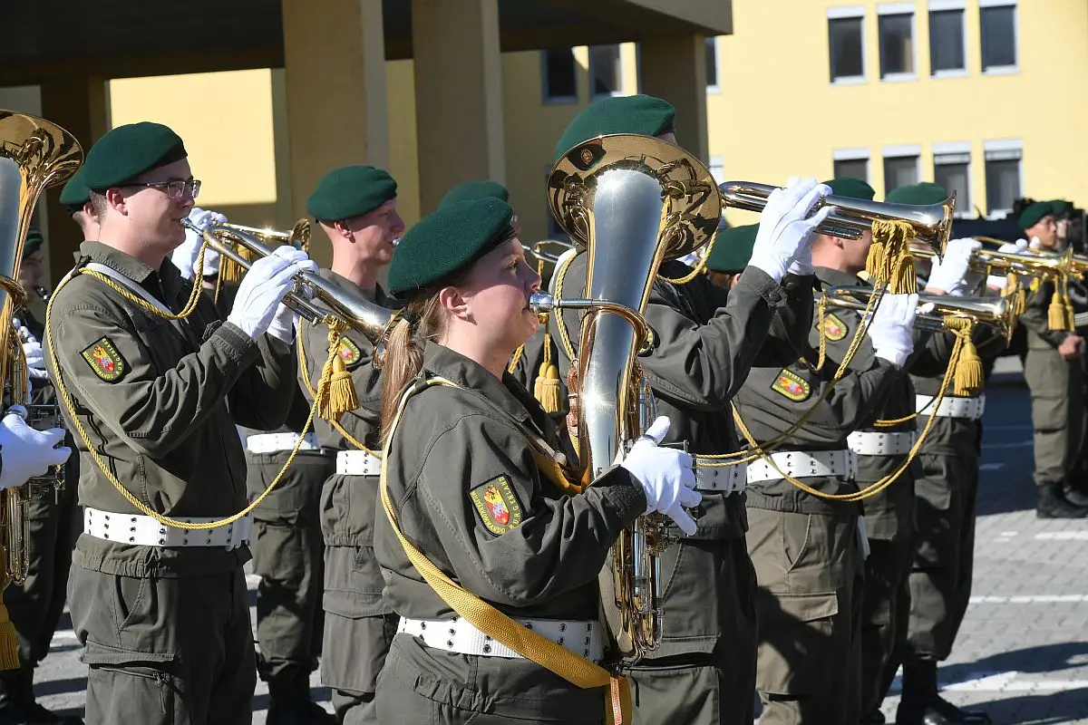 Nach dem Abschreiten der Formation durch Verteidigungsministerin Klaudia Tanner, Oberst Peter Krauss, Oberstleutnant Werner Winkler und Brigadier Gernot Gasser, begann der eigentliche Festakt mit den Ansprachen.