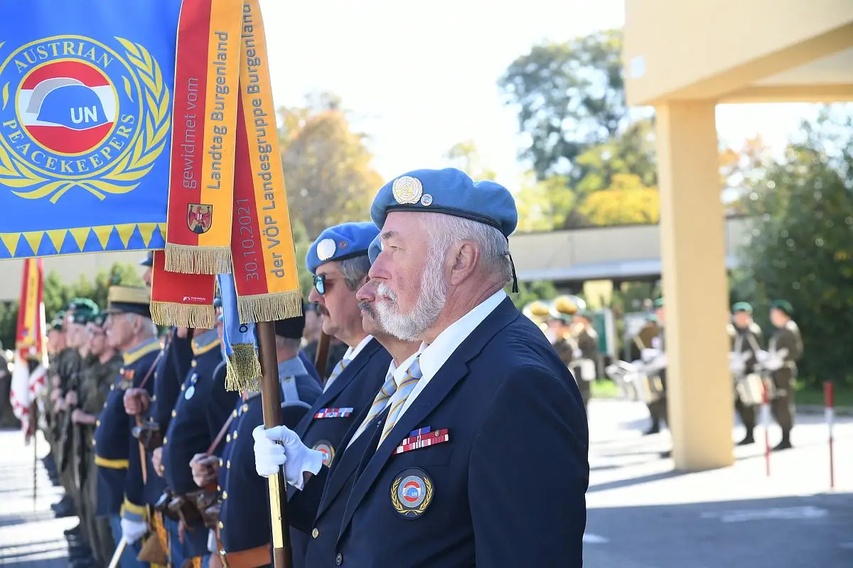 Als Zeichen der Würdigung der langjährigen Tätigkeit des scheidenden Kommandanten Oberst Peter Krauss nahmen an dem Festakt neben Abordnungen militärischer Verbände auch Verteidigungsministerin Klaudia Tanner, der burgenländische Militärkommandant Gernot Gasser, der stellvertretende Kommandant der 3. Jägerbrigade, Oberst Franz Langthaler, der Landtagsabgeordnete Oberstleutnant Gerald Handig und der „Hausherr” der Bruckneudorfer Kaserne, Oberst Markus Ziegler, teil. Die hohe Militärgeistlichkeit war durch den katholischen Bischofsvikar Alexander Wessely und den evangelischen Pfarrer Sebastian Götzendorfer vertreten. Weiters waren Abordnungen der UN-Peacekeeper sowie des Traditionsverbandes Infanterieregiment 76 unter Führung von Major in Tradition Josef Schwögelhofer vor den rund 50 Ehrengästen und knapp 300 Milizsoldaten angetreten.