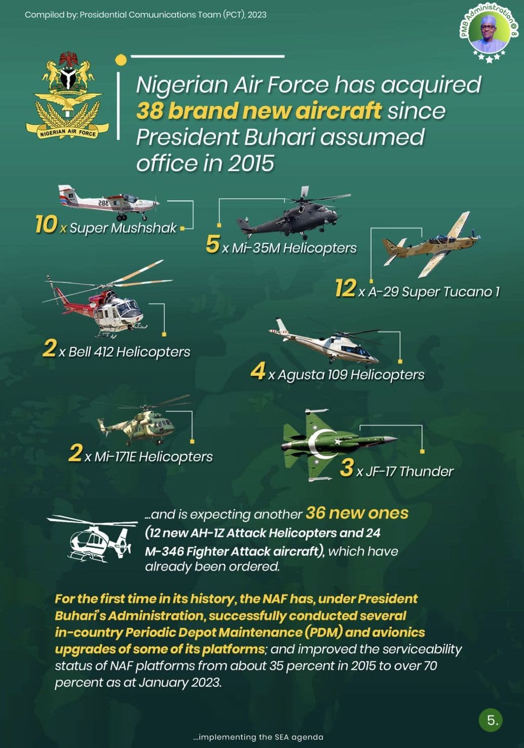Diese höchst offizielle Bestätigung per Infografik in den sozialen Medien mit Details über die Beschaffungen aller Teilstreitkräfte einschließlich der aktuellen und zukünftigen ORBAT (Order of Battle) sagt nichts anderes, als dass die nigerianische Luftwaffe (NAF) schließlich zwei Dutzend M-346FA-Flugzeuge erhalten wird, um zwei vollständige Staffeln als Ersatz für die gegen die Boko-Haram Islamisten abgenützten Alpha Jets auszurüsten. Italien selbst plant jene FA-Version bis dato nicht, sie ist aber für das hierzulande wiedererweckte Projekt „zweite Flotte” als Advanced Jet Trainer ein prominentes (G2G)Thema. Ob allerdings Turkmenistan oder Nigeria in der Zukunft für uns Partnerländer sein könnten, dazu ist wohl noch etwas an Vorstellungskraft angebracht.