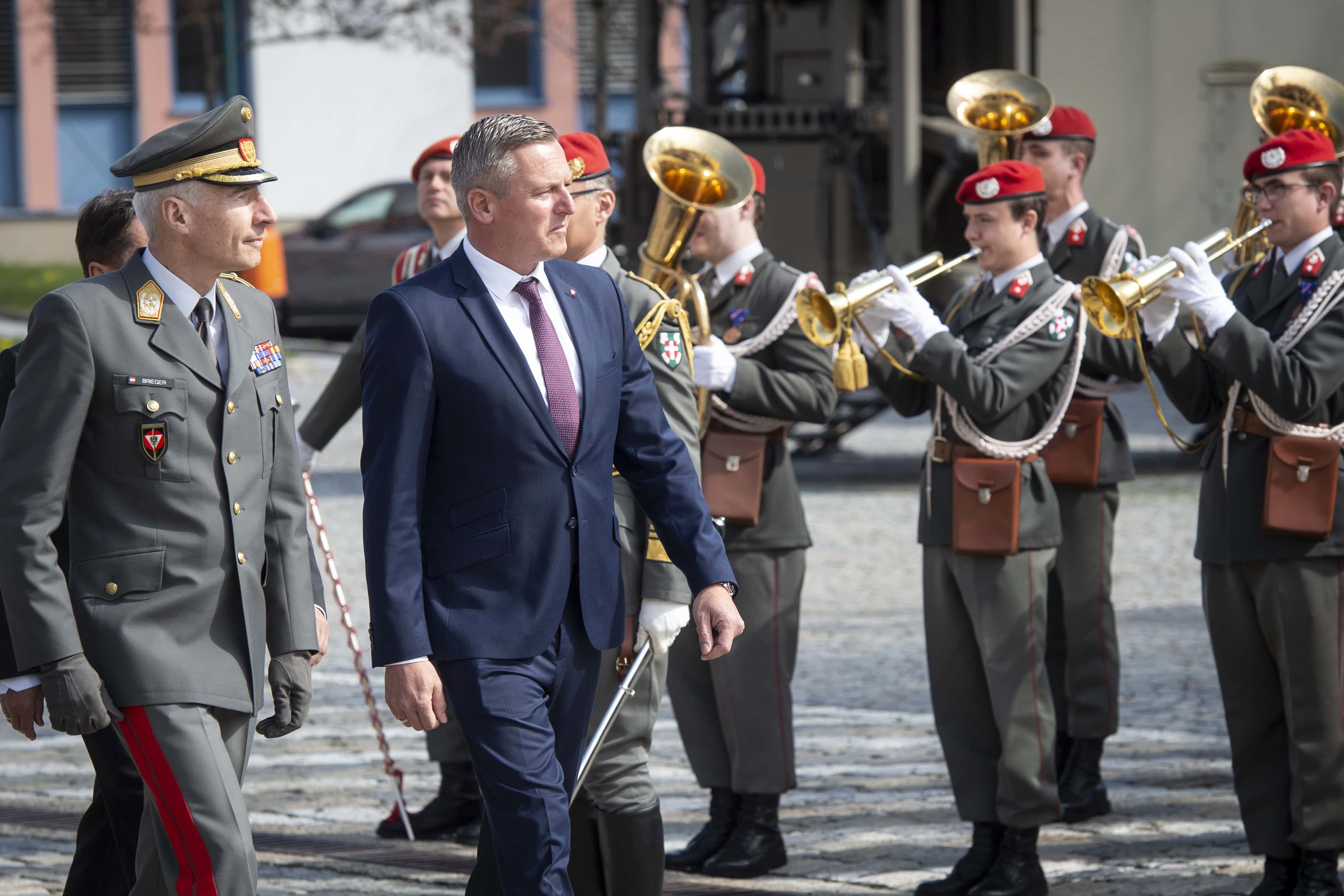 Am Freitag fand im Rahmen eines militärischen Festaktes die Aufstellung des neuen Kommandos Streitkräftebasis im Beisein von Verteidigungsminister Mario Kunasek in der Heckenast-Burian-Kaserne in Wien statt.