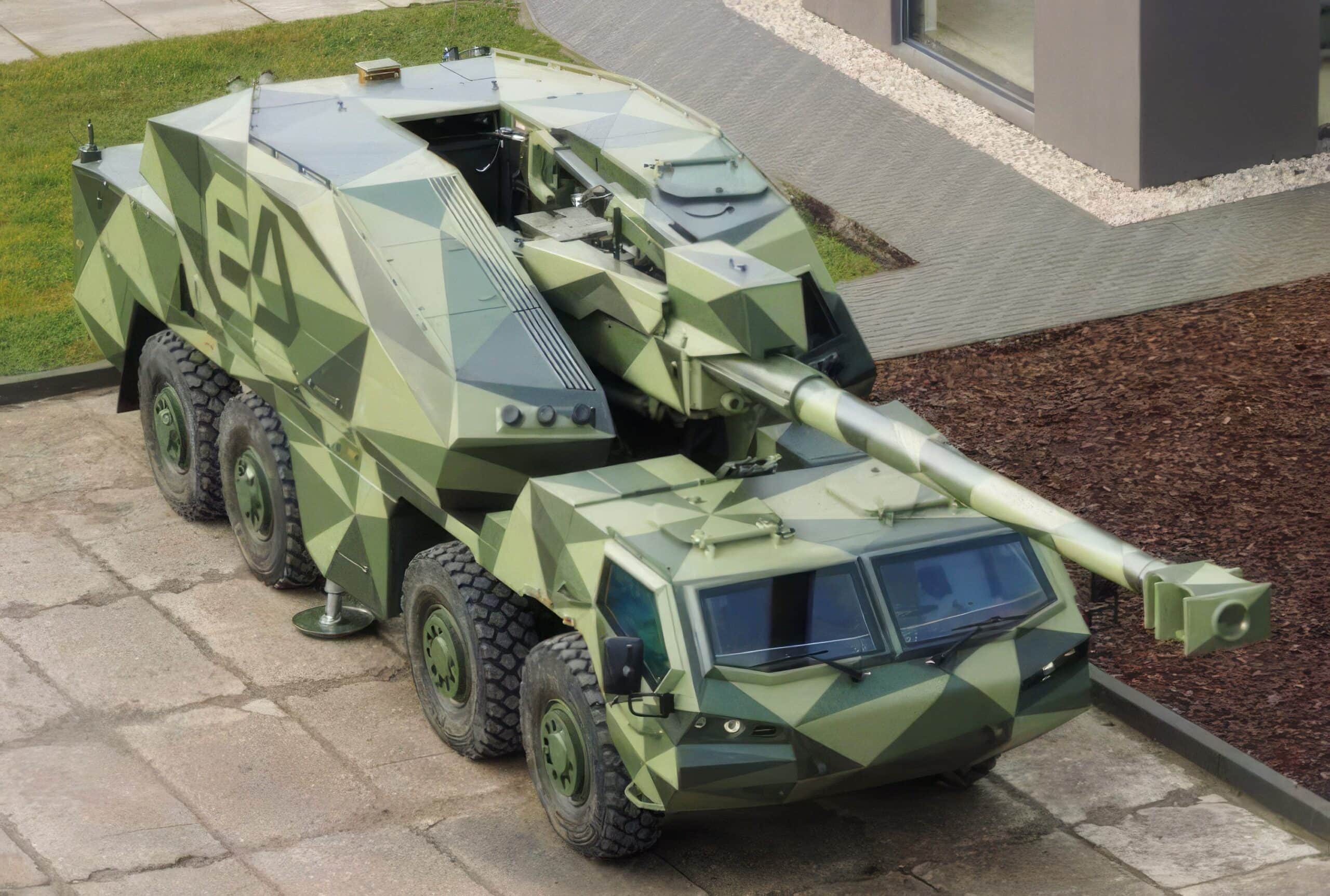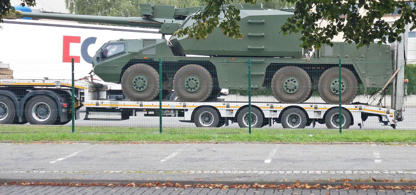 Bei einer Fahrt durch die nordmährische Stadt Šternberk, seit 2013 Sitz der Produktion des militärischen Spezialfahrzeugherstellers Excalibur Army, fiel Militär Aktuell kürzlich ein gleich am Zaun abgestelltes 8-Rad Selbstfahr-Artilleriegeschütz auf. An sich keine große Überraschung, ist doch der Standort seit 1951 als Sitz des früher staatlichen VOP-026-Panzerreparaturwerks bekannt. Erwähnenswert nun aber doch, weil das Geschütz nicht – wie sogleich vermutet – eines der eigentlich slowakischen und seit 2022 auch in die Ukraine (-> aktuelle Meldungen aus dem Ukraine-Krieg) gelieferten Zuzanas war, sondern sich nach einigem Abgleich als die neue Version 155 Millimeter/L45 Dita entpuppte.