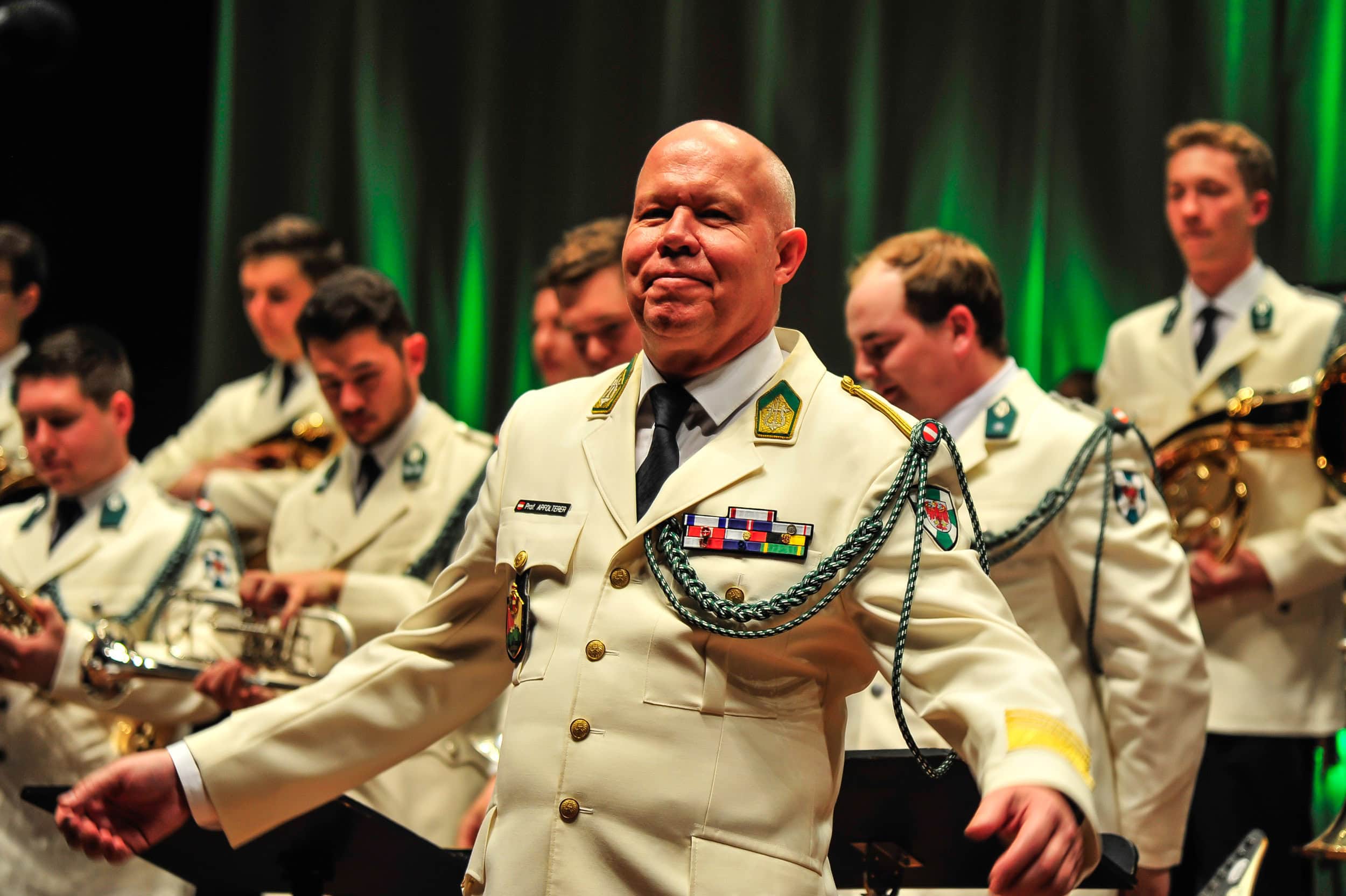 Unter der Leitung von Militärkapellmeister Oberst Prof. Hannes Apfolterer boten die Tiroler Militärmusiker Blasorchestermusik in Vollendung. Waren im ersten Teil des Konzertes Märsche, Walzer und Ouvertüren am Programm so bot der zweite Teil einen Querschnitt durch das moderne Repertoire der Militärmusiker mit ihrer Solistin und ihren Solisten.
