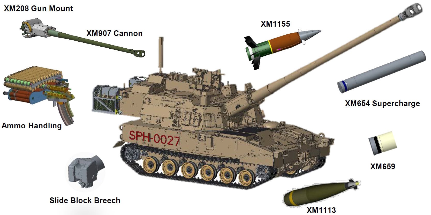 Bei den Tests verschoss ERCA zunächst eine Standardgranate, die ihr Ziel aufgrund starken Gegenwinds aber um etwa 100 Meter verfehlte. Im Vergleich zu jener wird das neue Artilleriegeschützsystem aber zwei neue Spitzentechnologien erhalten: die raketenverstärkte und präzisionsgelenkte NAMMO XM1113-Granate und das 155 mm/58 Kaliber Rohr (statt dem aktuellen 39 Kaliber Rohr) der neun Meter langen Kanone XM907, was die Reichweite sogar auf bis zu 100 Kilometer und damit eine drei Mal so hohe Feuerdistanz wie traditionelle 155-mm-Artillerie erhöhen soll. Durch die Erkenntnisse der Prototypenphase sollen Fähigkeitslücken in den indirekten Feuersystemen der Armee geschlossen und die Feuerrate und -reichweite durch die Entwicklung von Software- und Hardware-Integrationslösungen für die Energieverteilung verbessert werden. Das Entwicklungsprogramm zielt darauf ab, dem Anwender eine erweiterte Reichweite zu bieten und gleichzeitig das Gewicht der aktuellen Systeme beizubehalten, um die Auswirkungen auf die Haltbarkeit des Chassis zu minimieren.