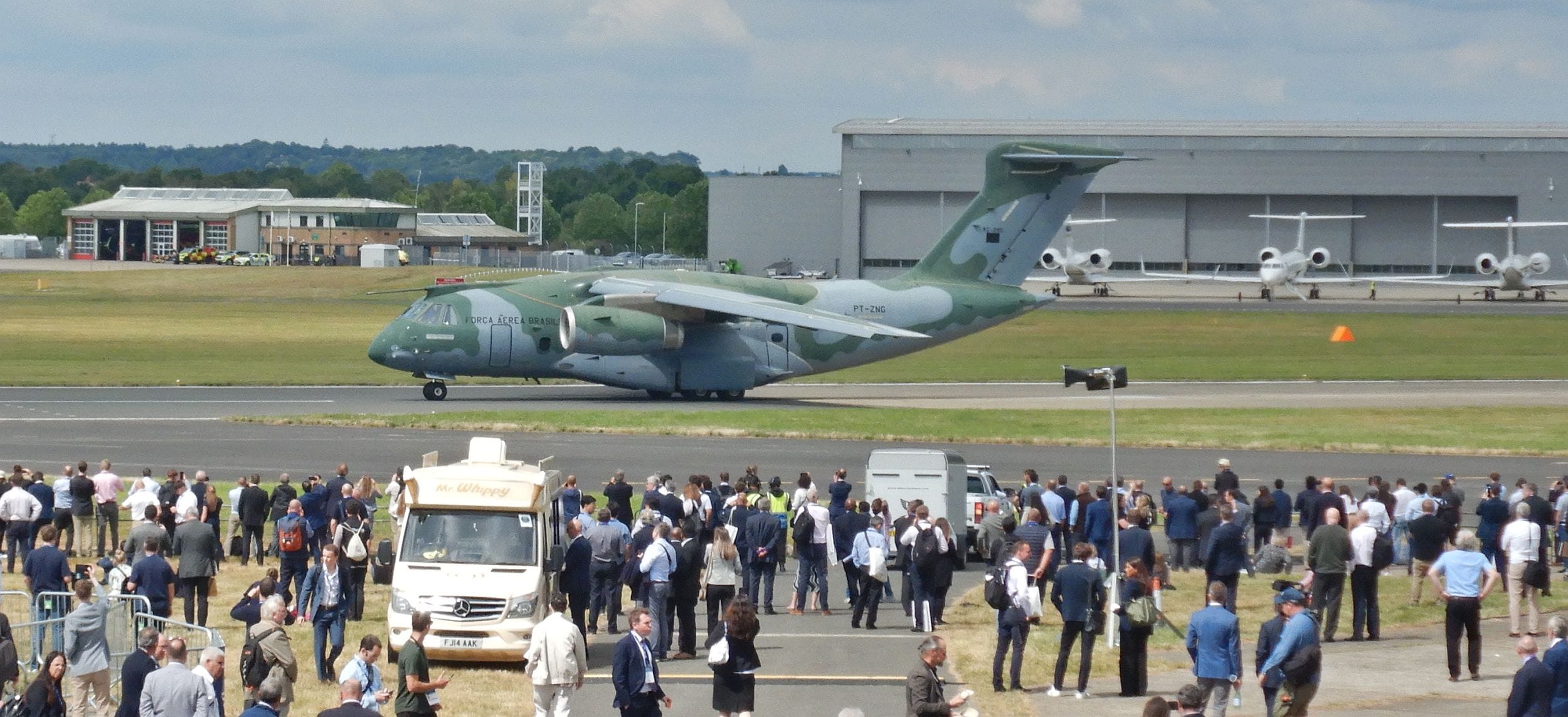 Die anschließend stattfindende Air Show in Farnborough war dann aus österreichischer Sicht besonders interessant: Wie berichtet erfolgte vor Ort die Unterschrift zum Kauf von insgesamt neun C-390M-Transportmaschinen von Hersteller Embraer durch die niederländische Luftwaffe und das Bundesheer. Fünf Maschinen davon gehen an die Niederländer, vier Stück sollen in Österreich die in die Jahre gekommene Hercules-Flotte ablösen.