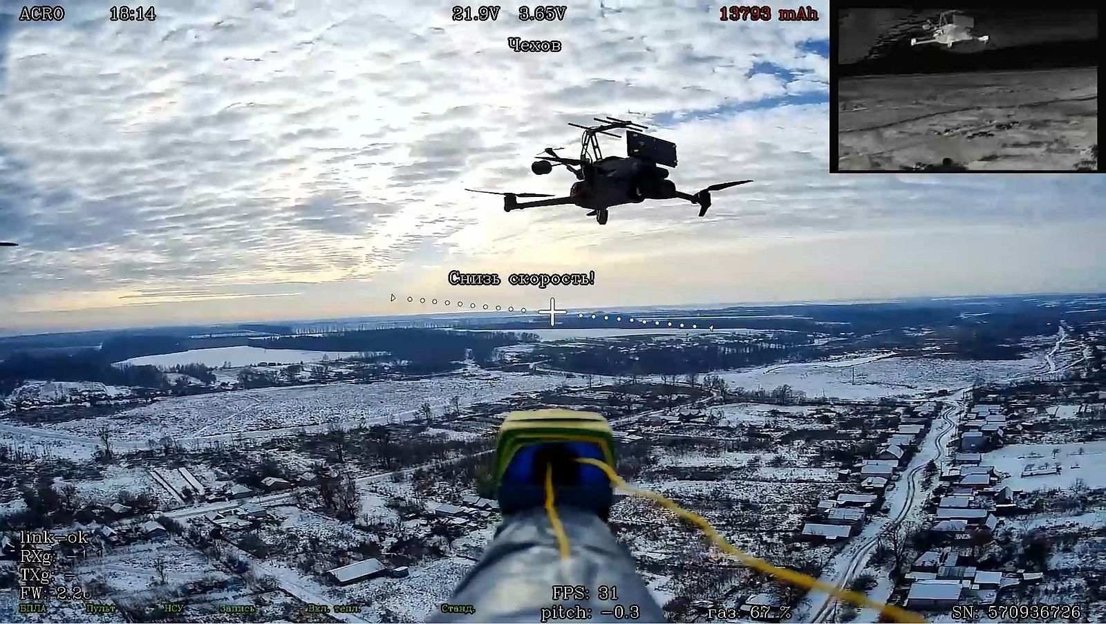 Der Generaldesigner des Drohnentechnikteams rund um die Glasfaser-FPV-Drohne „Prinz Vandal von Nowgorod” (KVN) hat eine neue Langstreckenmodifikation der KVN-Drohne vorgestellt. Das als KVN-35 bezeichnete Gerät der russischen Streitkräfte erreicht Distanzen von bis zu 35 Kilometer und transportiert einen drei Kilogramm schweren Gefechtskopf.