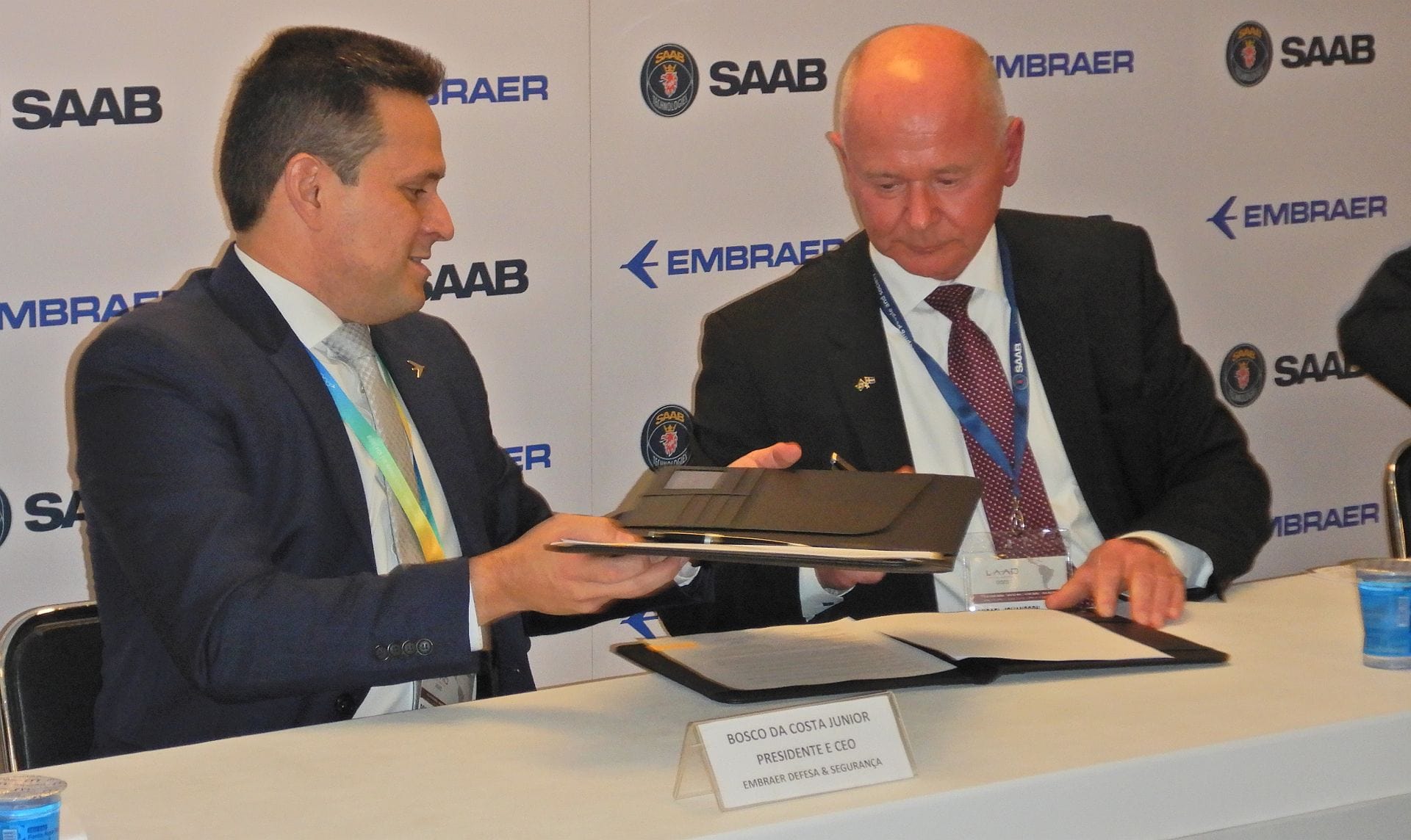 Saab und Embraer gaben auf der Sicherheits- und Verteidigungsmesse LAAD in Rio de Janeiro die Unterzeichnung einer Absichtserklärung (MoU) bekannt, um die Zusammenarbeit zwischen den beiden Unternehmen in verschiedenen Bereichen zu vertiefen, vor allem in Bezug auf Geschäftsentwicklung und technische Möglichkeiten.