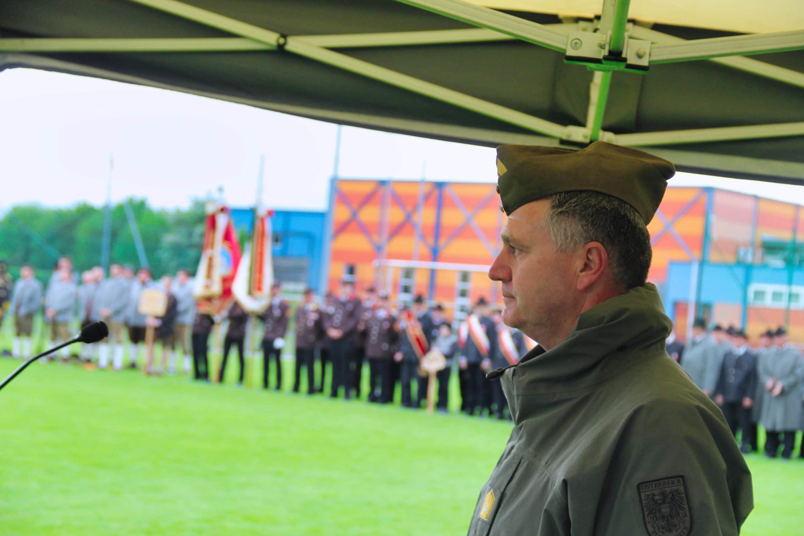 „Besonders freut es mich heute, dass wir diese Angelobung gemeinsam mit der Kameradschaft Siezenheim – die dieses Wochenende ihr 150-jähriges Bestehen feiert – durchführen können. Kameradschaft ist für uns Soldaten kein abgedroschener Begriff, sondern wir leben diese täglich. Verlässliche Kameraden sind auch für Sie in ihrem Grundwehrdienst sehr wichtig, um den nicht immer leichten Dienst zu bewältigen. Gerade die Verbundenheit zwischen Alt und Jung – ehemaligen und aktiven Soldaten – schätzen wir besonders. Daher ist die gelebte Partnerschaft zwischen dem Militär und dem Salzburger Kameradschaftsbund von besonderer Bedeutung”, betonte Schinnerl.