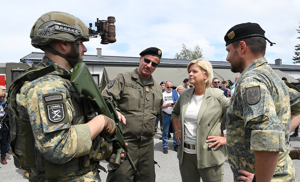 „Ich bin unseren Soldatinnen und Soldaten dankbar, die all ihre Aufträge immer erfüllt haben, obwohl wir Ihnen nicht das modernste Gerät in die Hand gegeben haben, weil wir geglaubt haben, der Frieden sei selbstverständlich. Das Österreichische Bundesheer und unsere Soldatinnen und Soldaten mit modernstem Gerät auszustatten, das ist unsere Aufgabe.”