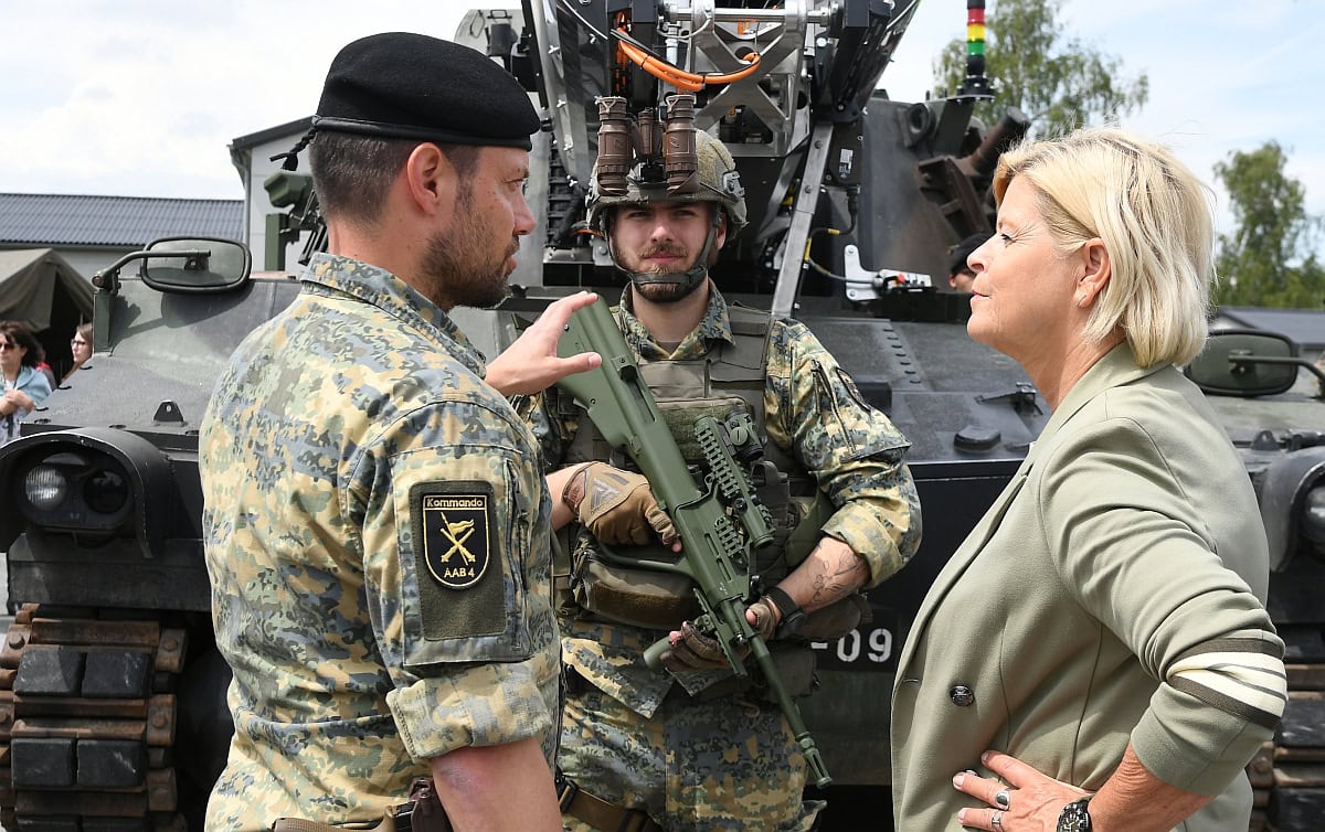 Nach Abschluss der offiziellen Übergabe ließ es sich die Ministerin nicht nehmen, noch Fachgespräche mit den Soldaten zu führen.